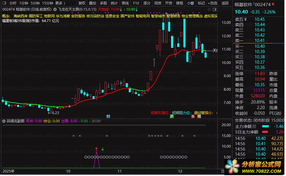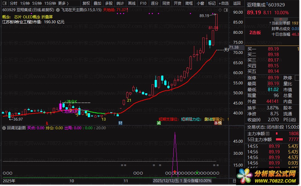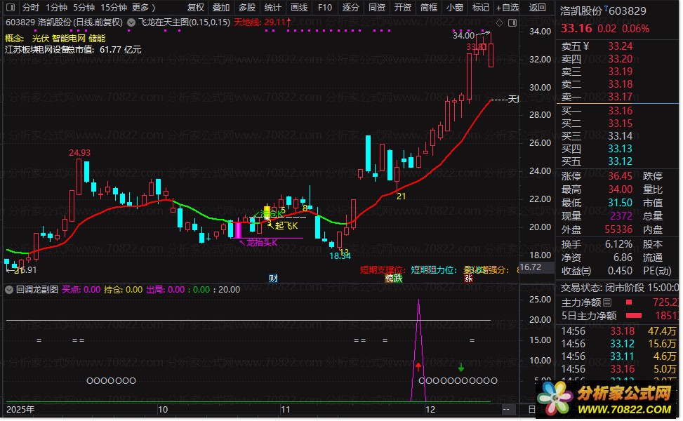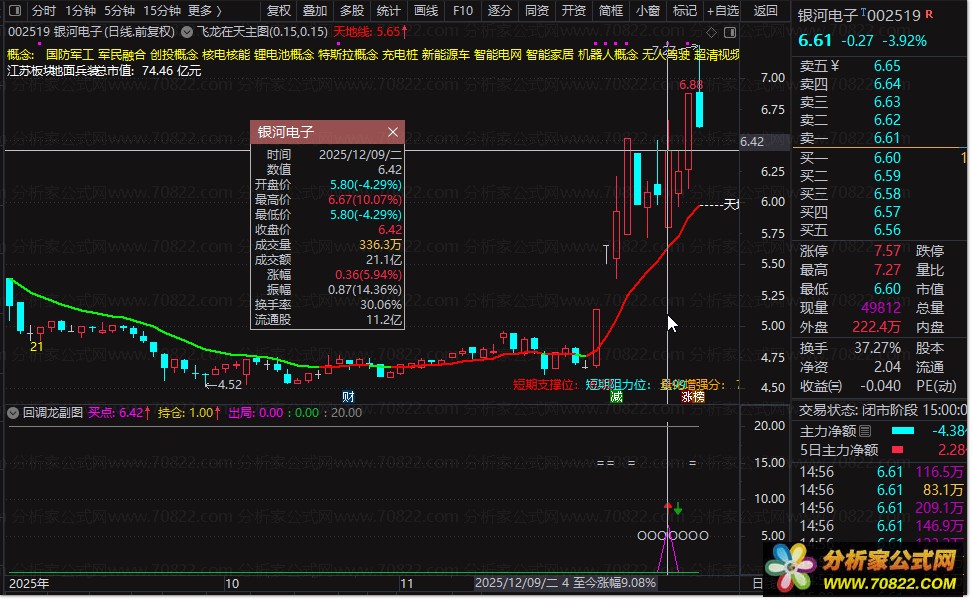 〖回调龙〗副图+选股指标,收益率与成功率的完美结合 尾盘选股,没有未来函数,幅图中三角红箭头为买入信号。