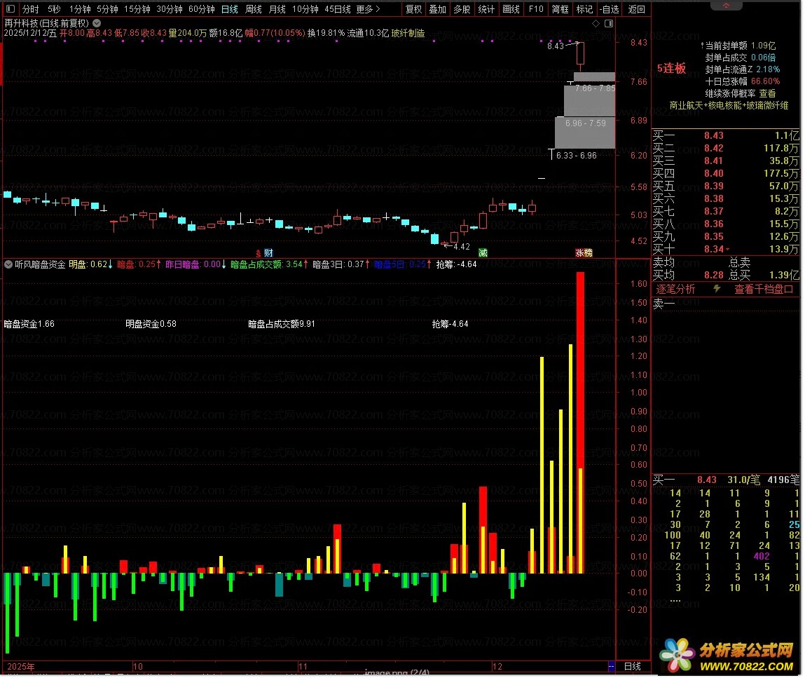注:指标需要L2权限,推荐使用开心果通达信或者股神之路版通达信,都有免费的L2。