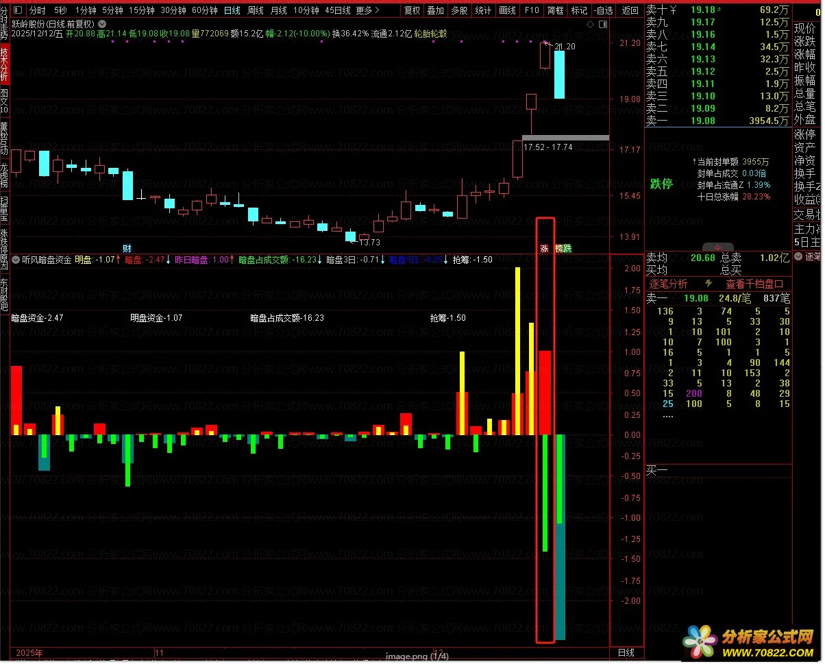 珍藏级自用〖听风暗盘资金〗副图,自从有了这个指标,本月10战8红,以前亏损的,也慢慢再回本了。。。 本指标取自同花顺暗盘资金数据,官方原版售价高达数千元,经过自主优化调整后,虽与原版存在细微算法差异,但核心资金流向判断功能高度一致。通过精准算法优化,该指标能更直观反映股票真实资金动向,助力投资者捕捉主力资金轨迹。