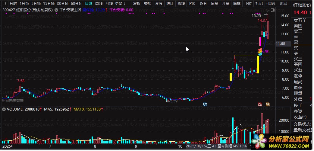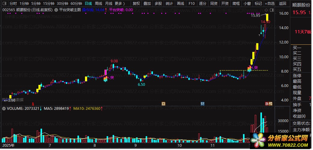 平台突破指标以"平台盘整突破拉升"为核心逻辑,通过主图与选股双指标协同工作,实现从信号识别到交易执行的全流程优化。其手机电脑通用特性与开源指标源码设计,降低了技术使用门槛,让更多投资者能够利用专业工具捕捉主升浪启动点,在动态变化的市场中占据先机。