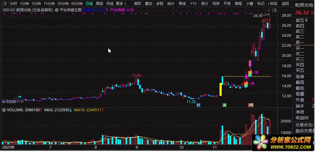 核心功能围绕"平台横盘整理突破"展开,采用量化算法识别价格区间震荡后的有效突破,适配手机与电脑双平台通用的指标源码。技术逻辑上,指标通过多维度参数筛选,过滤无效波动信号,强化趋势确认的可靠性。在实战应用中,该指标对"平台盘整突破拉升"形态具有高识别度,尤其擅长捕捉由量变到质变的转折点,为短中线操作提供科学依据。