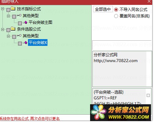 * 关于股票公式时间限制,如果在引入大智慧公式,交易师公式或者飞狐公式的时候,发现公式名称栏是空白的,这时候调整电脑时间到1997年,又能出现公式名称,并且能正常显示,可能是公式使用期限已过。