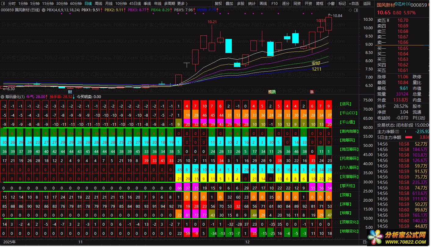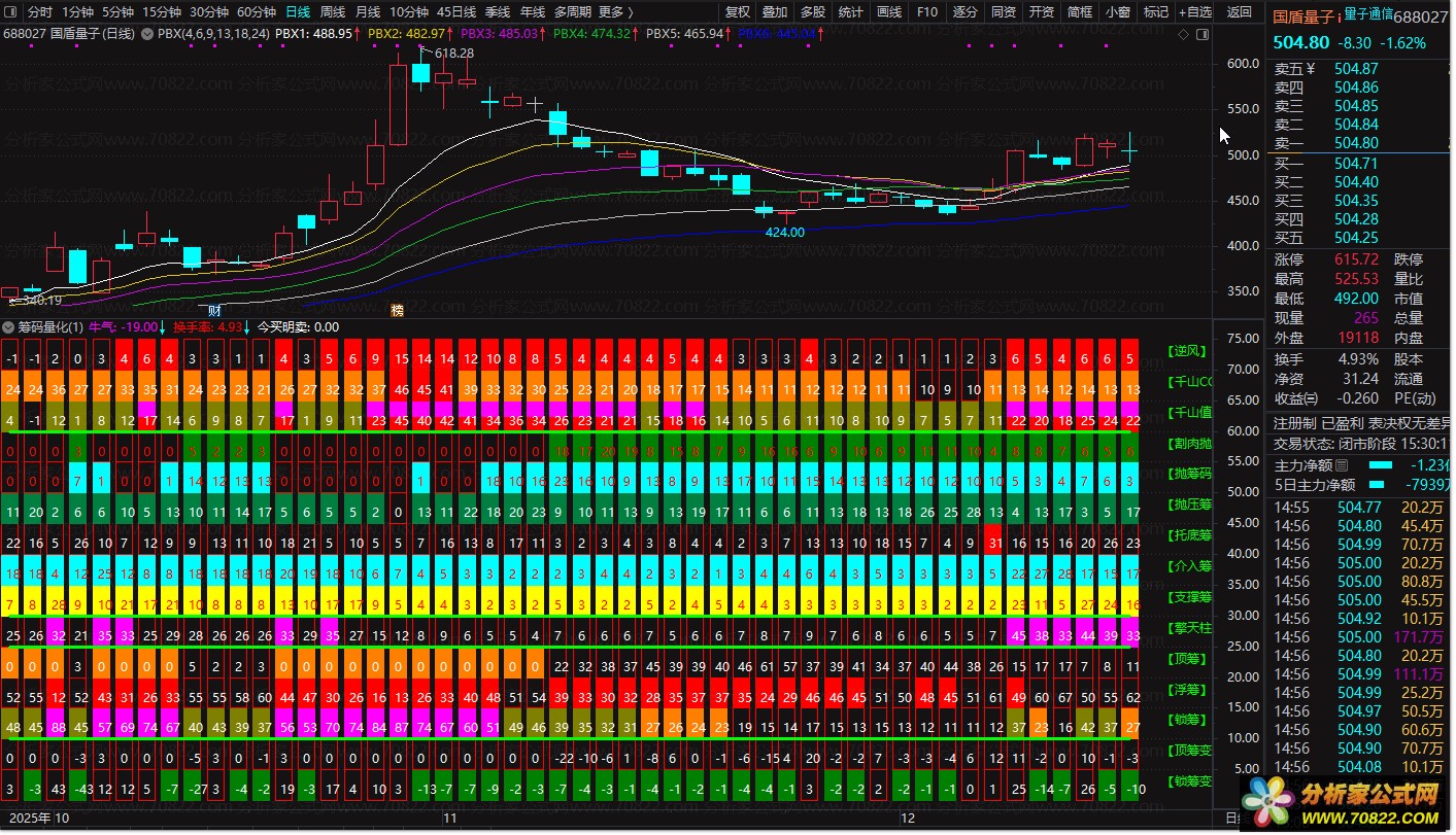 筹码分析巅峰之作【筹码量化】副图指标 殷富筹码尖峰理论改编源码解析 任何技术指标都存在滞后性,唯有适应行情变化并持续优化,才能保持优势。没有完美指标,只有适配策略的指标。今日分享【筹码量化】副图指标,虽操作稍复杂但价值显著。