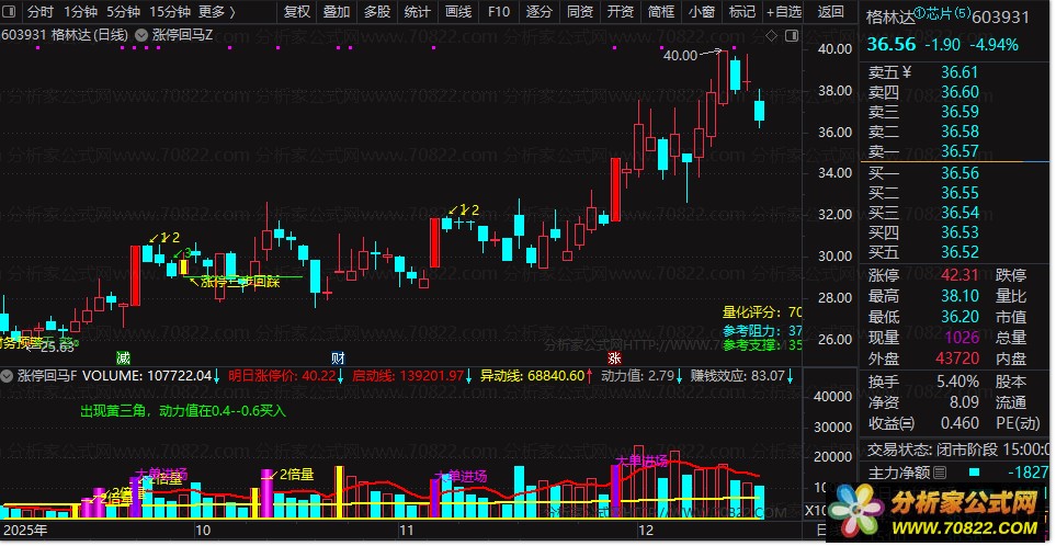 本系统支持主图、副图与选股一体化,适用于涨停回马战法的实战应用。
