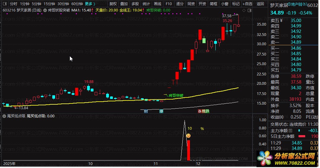 【尾买低点吸】尾盘低吸思路解析与指标源码分享 手机电脑通用副图选股工具 指标简介: