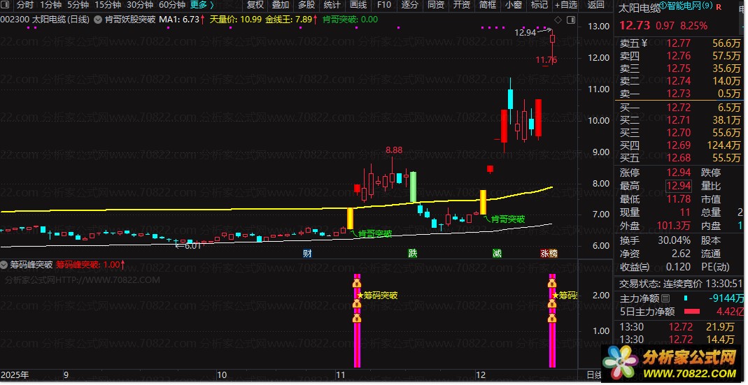 〖筹码峰突破〗副图选股指标 筹码角度精准判断主力动向 手机电脑通用 公式介绍: