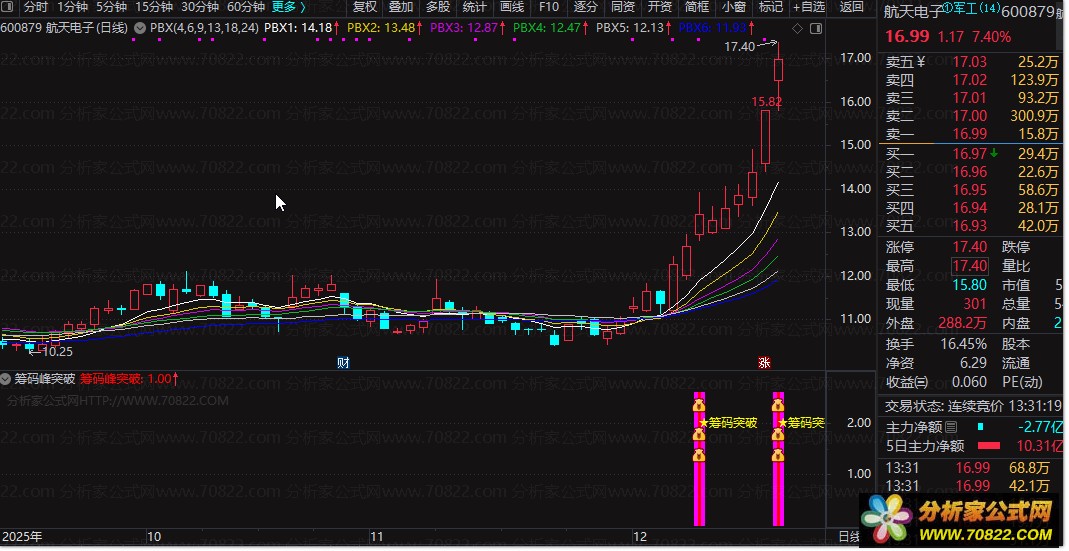 2、当股价在某一日强势突破筹码密集区的平均成本价时,即视为关键突破信号,是捕捉主力启动行情的最佳时机。此时指标会及时发出明确的突破提示,帮助投资者快速决策,提高交易胜率。