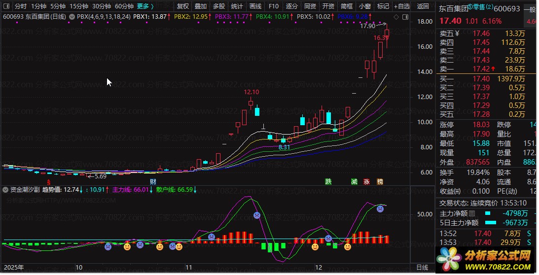 〖资金潮汐〗副图+选股双用工具 资金与MACD协同判断短线强弱 附通用源码 资金潮汐指标是通达信平台推出的双功能工具,包含1个副图指标与1个选股指标,通过资金量偏离度与MACD指标协同判断短期走势强弱,支持手机端与电脑端通用源码直接导入使用。
