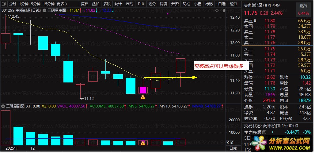 2、信号出现后,关注股价突破近期高点时机,突破时可视为买入确认;