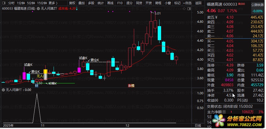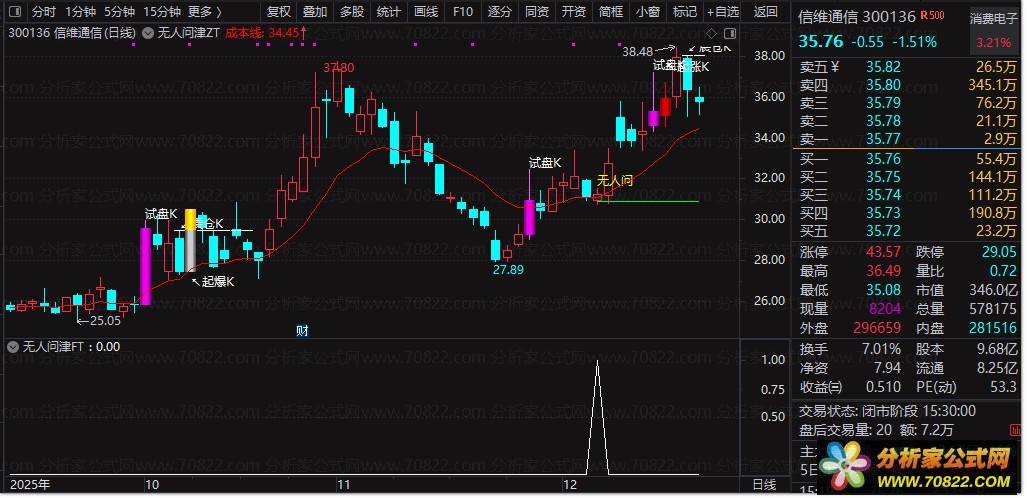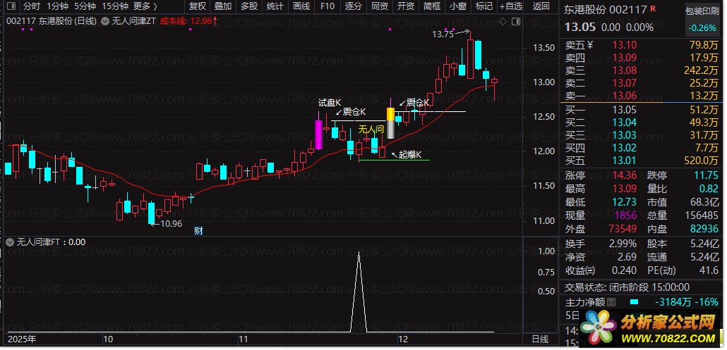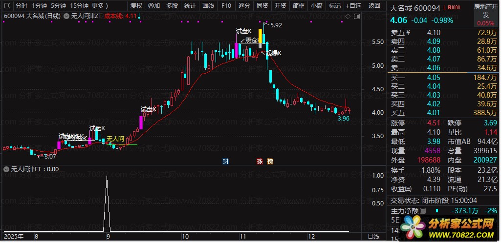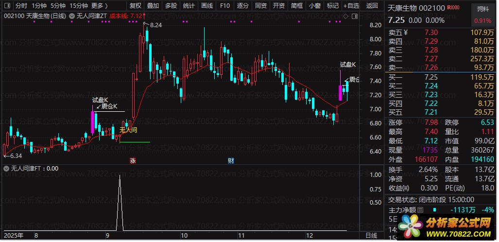 主图指标发出“无人问”字样信号时,尾盘介入即可;