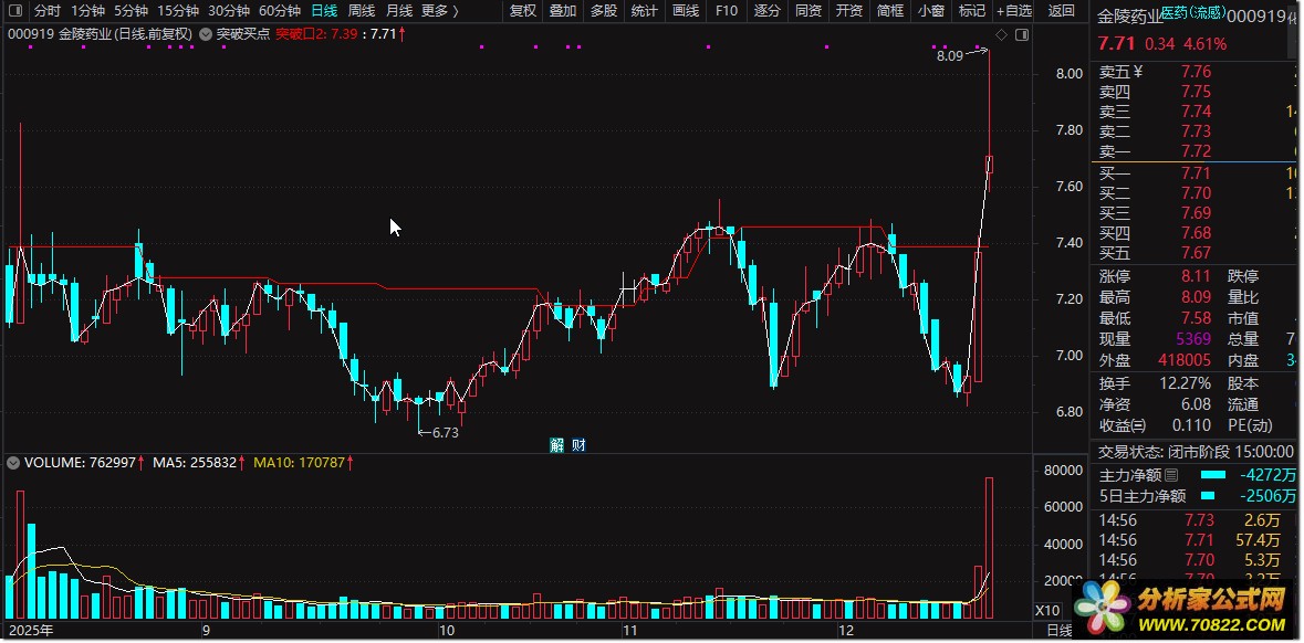 无论短线操作还是中长线布局,副图指标均能提供可靠技术支撑。它不仅是一个实用的突破买点工具,更是您投资过程中的智能助手,助力提升交易胜率与收益水平。在波动频繁的市场环境中,拥有〖突破买点〗副图指标,等于掌握了一套精准识别突破买点的有效方法,助您稳步前行,赢在股市。