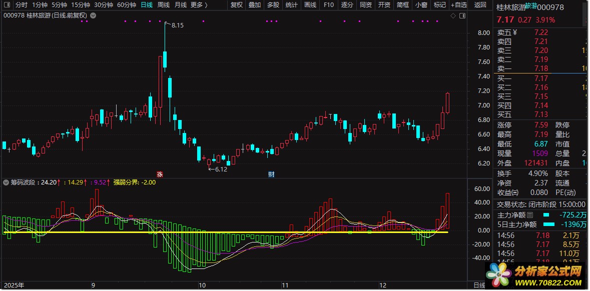 绿柱扩大 + 筹线下穿-2线 → 考虑减仓或观望;