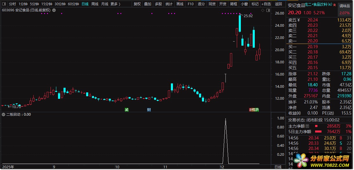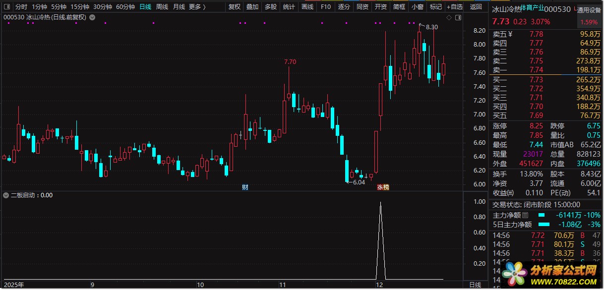 〖二板启动〗副图+选股指标 捕捉股票二板启动关键信号 该指标如同精准标尺,通过严谨计算与多维度数据筛选,助力投资者捕捉股票二板启动关键信号。它融合成交量、价格波动及市场综合要素,在复杂股海中提供清晰方向指引。