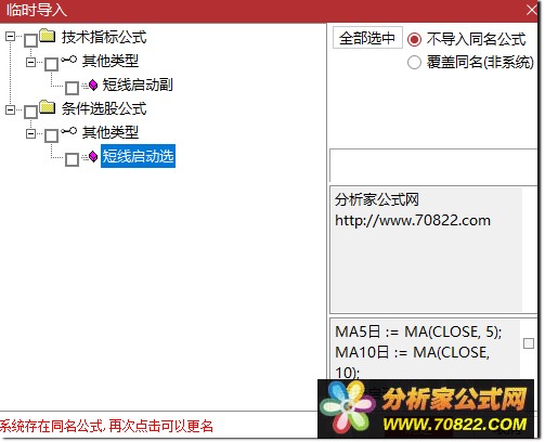 * 关于股票公式时间限制,如果在引入大智慧公式,交易师公式或者飞狐公式的时候,发现公式名称栏是空白的,这时候调整电脑时间到1997年,又能出现公式名称,并且能正常显示,可能是公式使用期限已过。