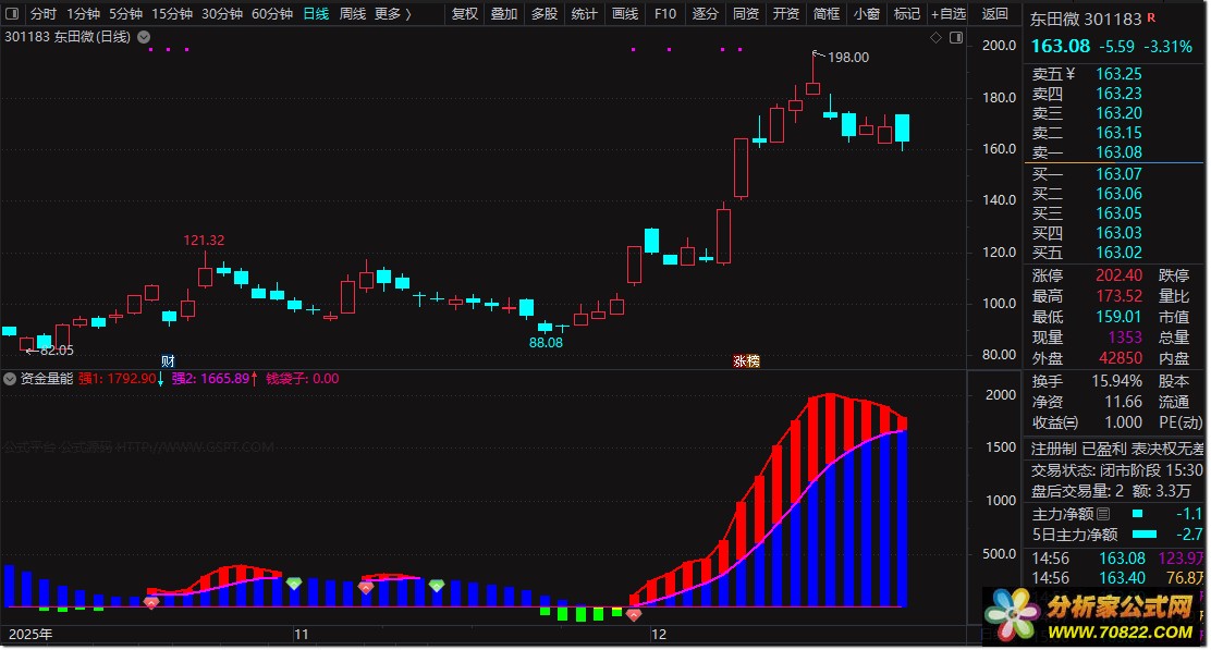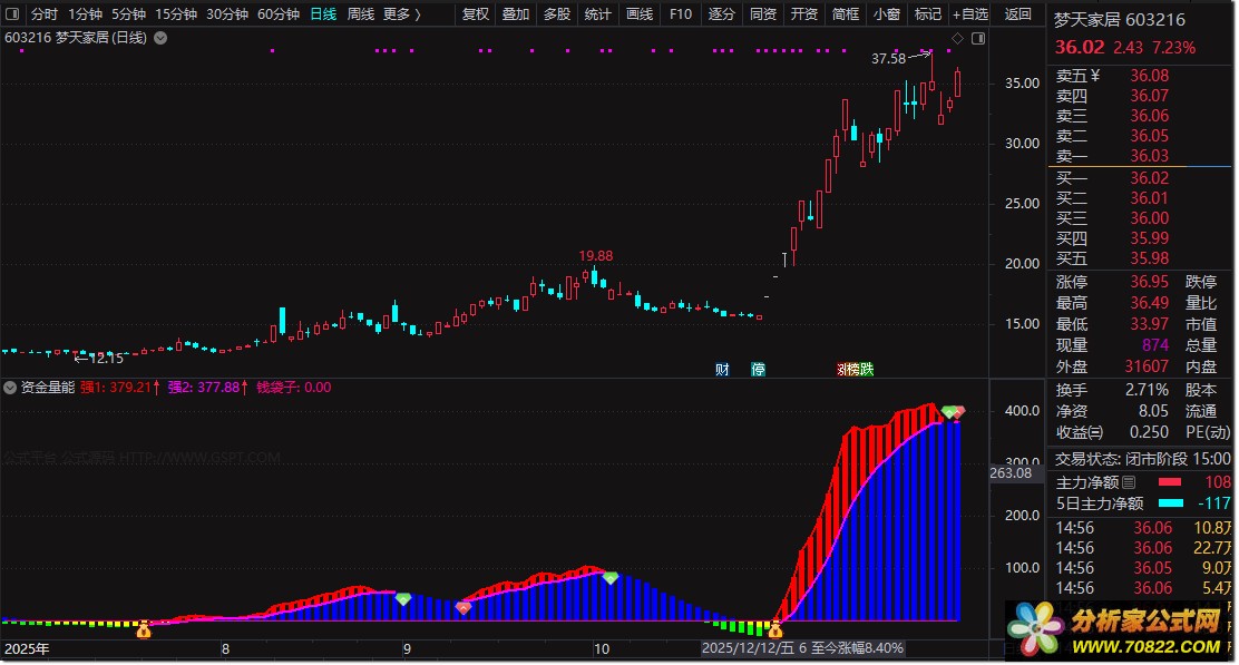 〖资金量能副图〗钻石钱袋信号 精准捕捉波段牛股启动 老指标配选股 指标本是一个老指标,今日分享因配选股功能。资金量能副图通过红绿柱变化与钻石钱袋钻石信号,直观呈现市场趋势强弱,精准捕捉波段牛股启动前低位介入机会,实现与主力成本同步甚至更低波段操作。红柱体系量化上涨动能,柱体越高动能越强;绿柱体系量化调整压力,柱体越高抛压越大。钻石标记红钻石金叉为买入信号,绿钻石死叉为卖出信号。选股功能自动筛选动能转折加趋势确认双重符合条件的标的。核心价值在于主升浪启动前发出信号,助力在主力建仓成本区完成布局。