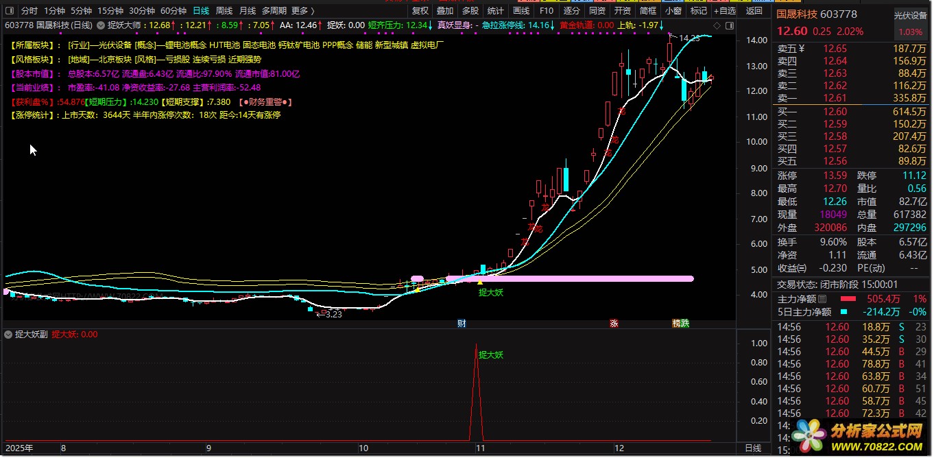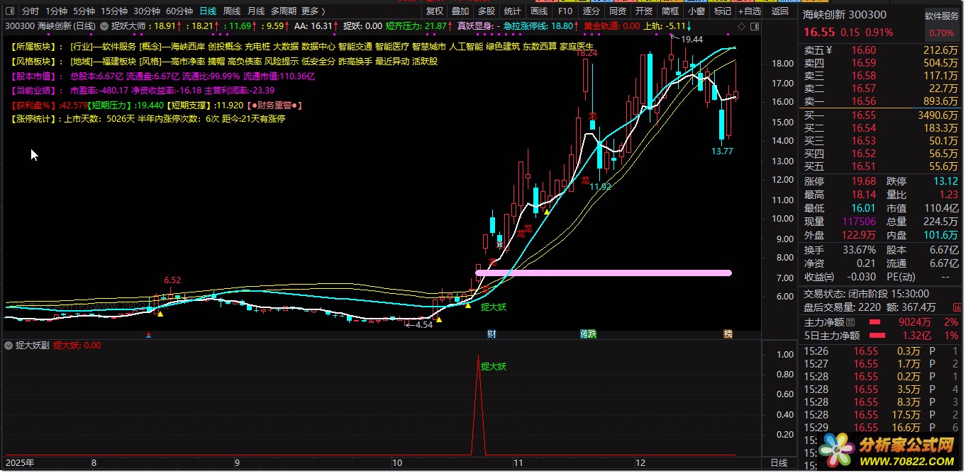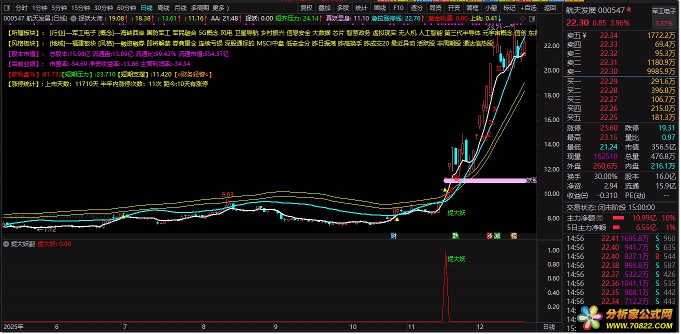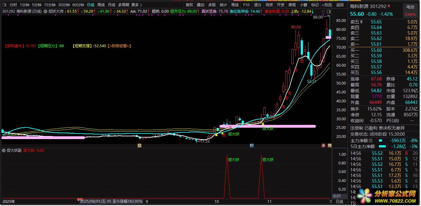 选出的股票不一定是妖股,但是如果你不知道手中的好股是否牛妖,可以用本指标来验证一下是否出现:捉大妖 的信号.