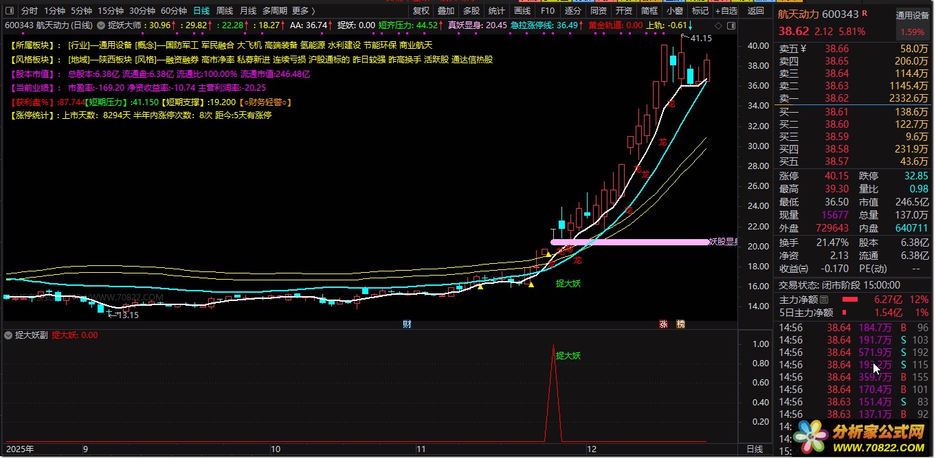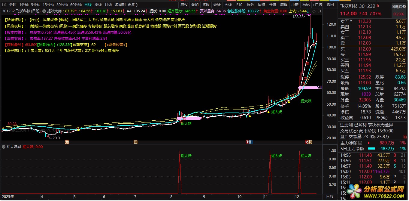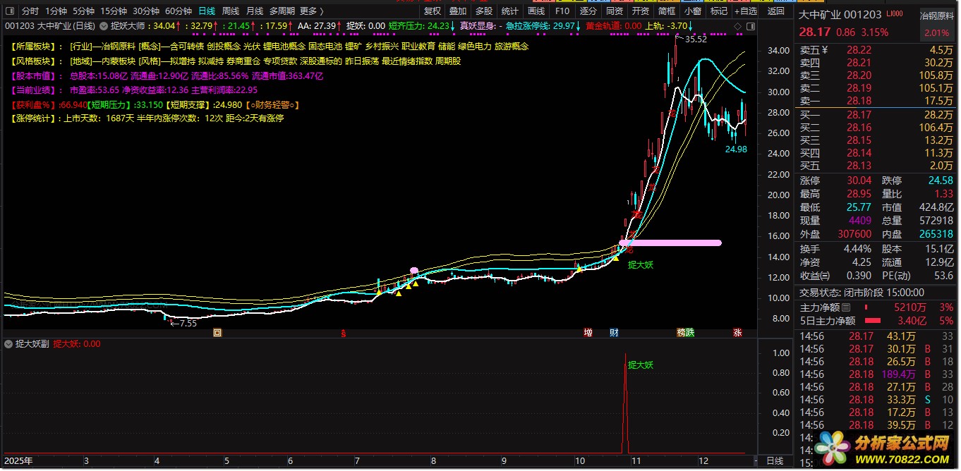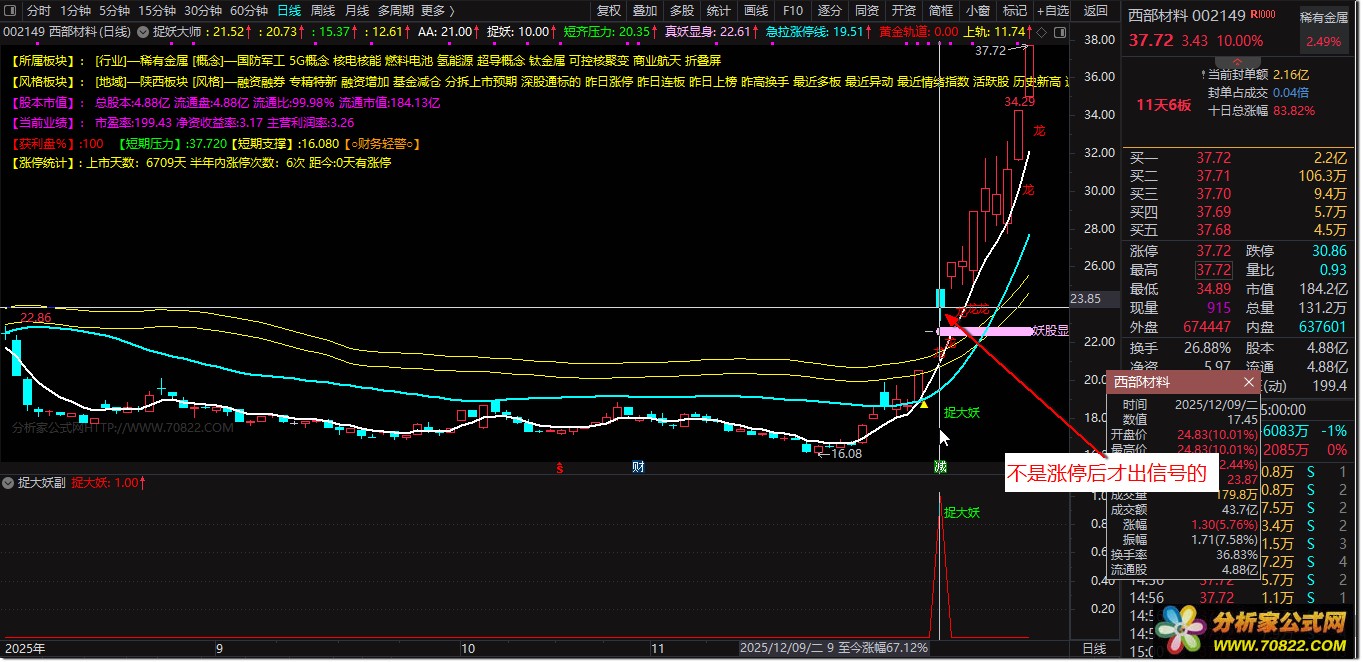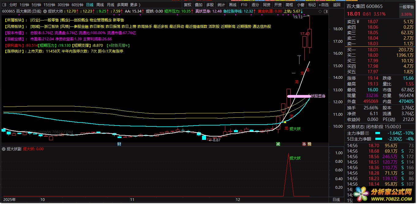 选出的股票不一定是妖股,但是如果你不知道手中的好股是否牛妖,可以用本指标来验证一下是否出现:捉大妖 的信号.