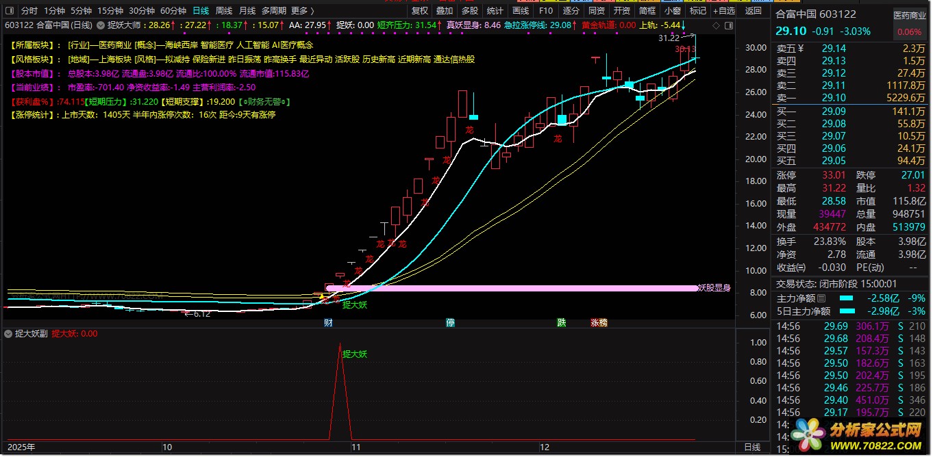 〖捉妖大师〗妖龙显身,主图指标及选股指标 不做过多的评论,