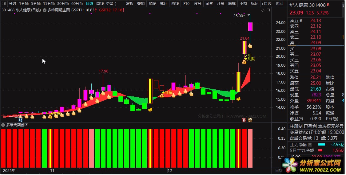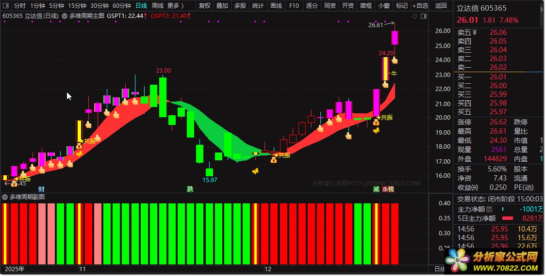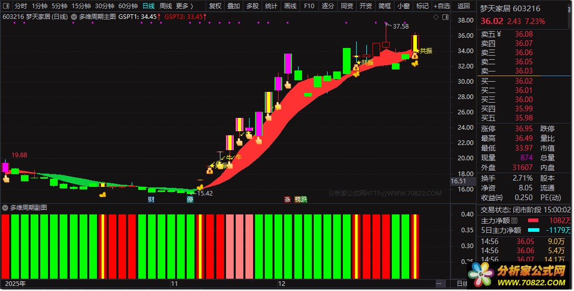 多维周期共振指标系统,依托均线系统、趋势动能与波段信号的协同作用,通过多重技术因素共振实现精准判断。