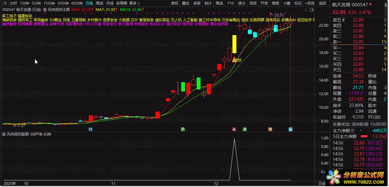 风向捉妖指标通过颜色直观识别涨停潜力,当妖股启动时立即呈现黄色警示。该指标精准捕捉涨停基因,助力投资者快速锁定强势机会。