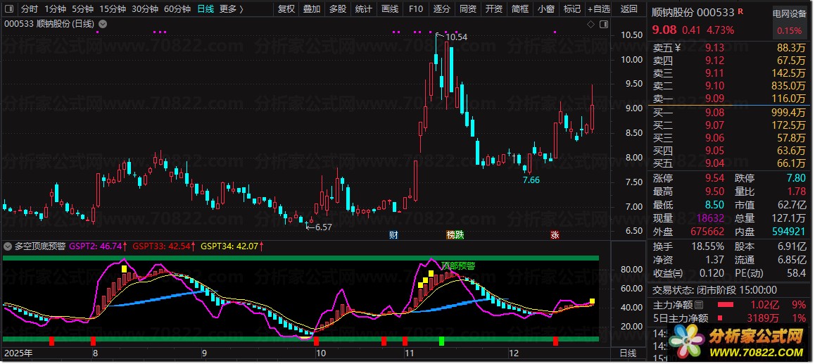 〖多空顶底预警副图〗——精准捕捉主力动向,提前预判顶部与底部! 公式核心原理: