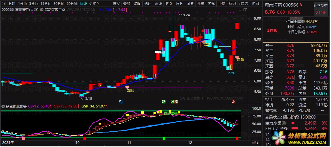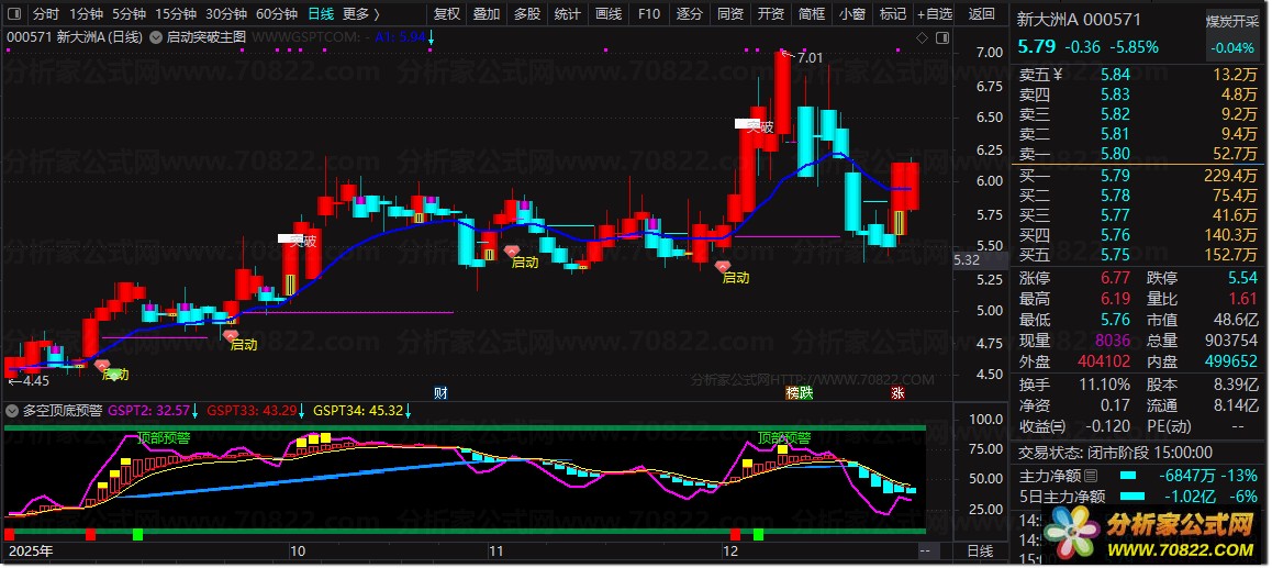 〖启动突破主图〗——精准捕捉主力启动与趋势突破信号! “启动突破主图”是一款融合价格结构、均线系统、量能验证及多因子共振逻辑的通达信主图指标。公式通过识别连续K线组合(如阳包阴、震荡收敛等)判断短期多空转换,并结合30日跌幅超卖、MACD金叉、EMA多周期共振、成交量放大等条件,精准定位“启动”、“加仓”、“突破”三大关键交易节点。