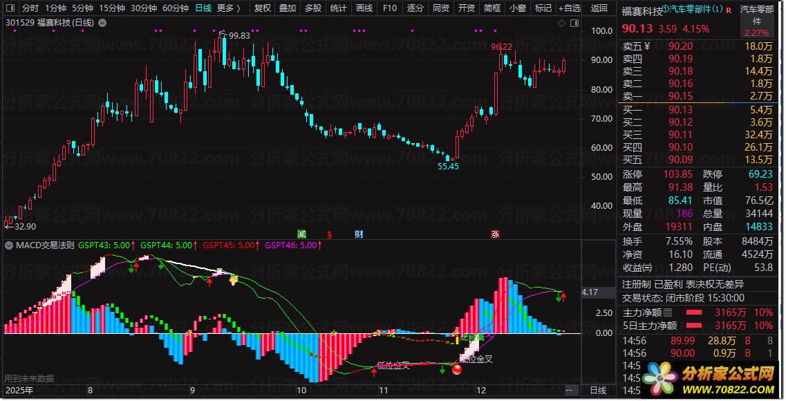 动量能量柱:通过红蓝渐变柱体反映MACD柱状图动能变化;