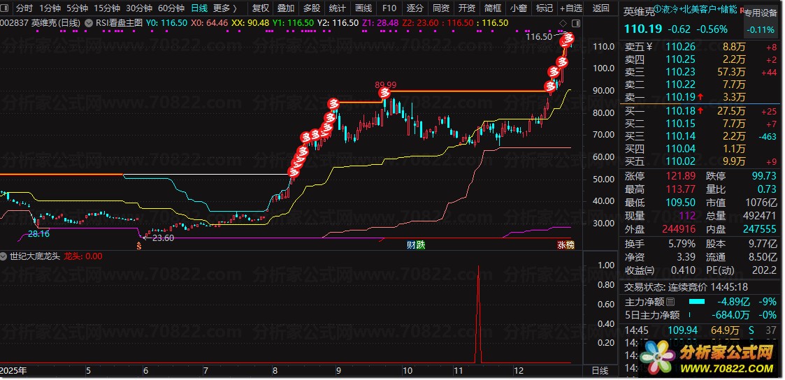 第一重:均线与动能共振。5日、30日、34日均线形成多头排列,同时MACD指标同步出现金叉,有效释放趋势反转信号,为底部龙头启动提供初步确认。