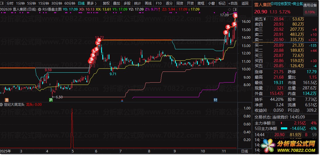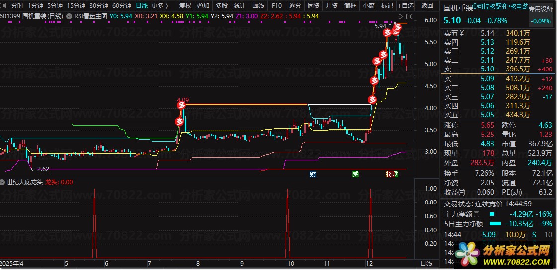 使用说明:当盘面出现红色K线“龙头”信号时,需同步确认成交量放大与MACD金叉双重条件。该策略适配中短线交易节奏,建议持仓周期为3至5个交易日。公式通过多维度交叉验证机制有效过滤假突破,显著提升操作胜率。