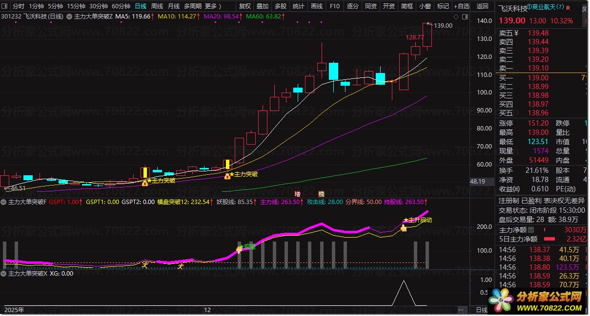 3. 风险控制:该系统为趋势跟踪工具,需结合市场环境使用。突破失败时,主图均线多头排列被破坏或副图股价跌破攻击线可作为止损参考。