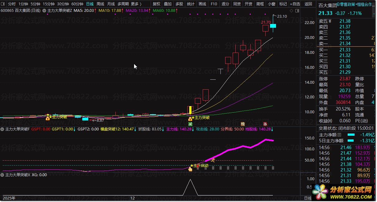 〖主力大单突破〗揭秘主力动向 大单突破擒牛系统 本系统旨在捕捉主力资金介入引发的关键突破信号,助力投资者识别趋势启动点。它包含主图、副图及选股公式,全方位监控盘面异动。
