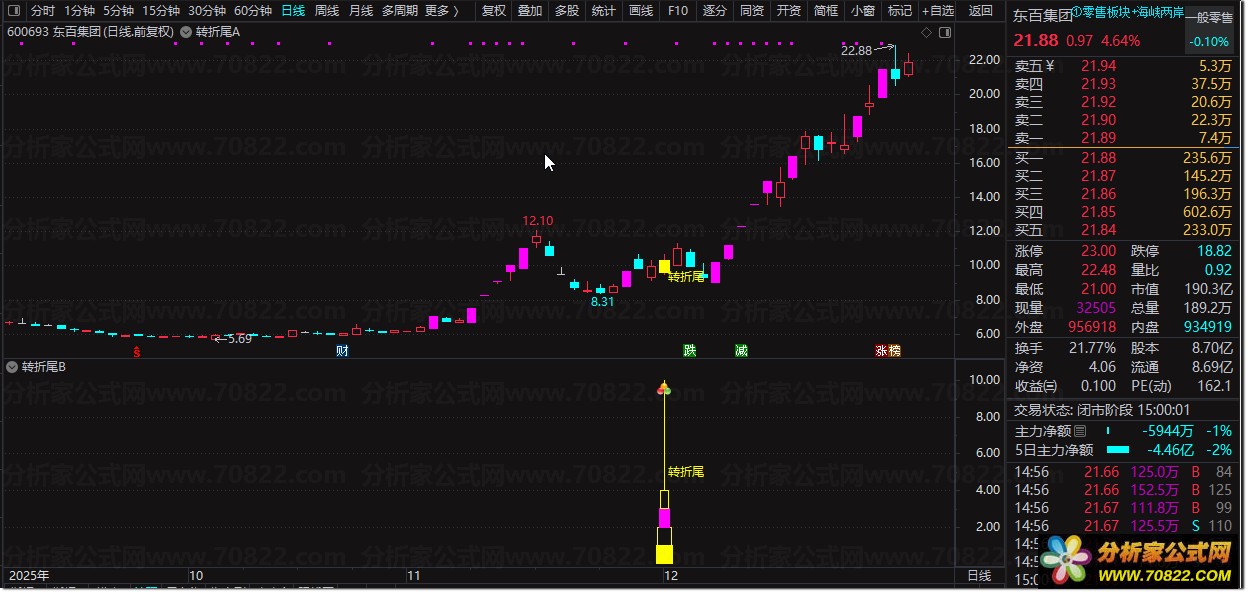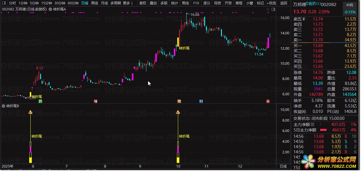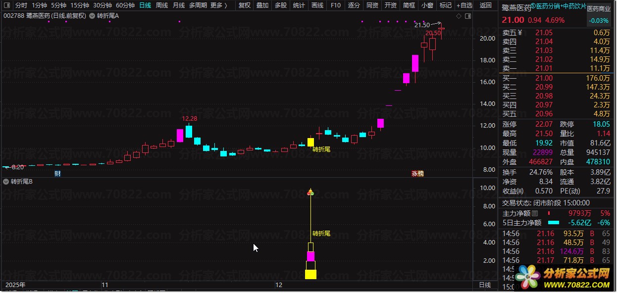 〖2026转折尾〗—————主副图+选股 无未来函数 源码 本指标包含:1个主图+1个副图+1个选股