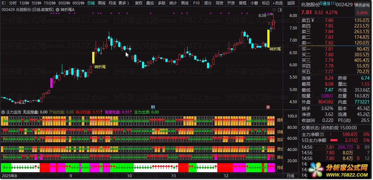 在实际操作中,当强龙趋势、庄家抬轿与六脉神剑三大模块同步发出积极信号,例如趋势向上、动能增强、资金进场、控盘提升时,可视为较可靠的牛股买入时机。该组合策略有助于精准捕捉主力拉升阶段的波段行情。