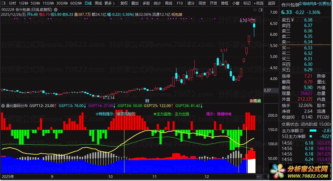 算筹码分布:首先通过WINNER函数精准计算获利盘比例,结合价格波动数据,明确当前筹码分布形态,为后续分析奠定基础。