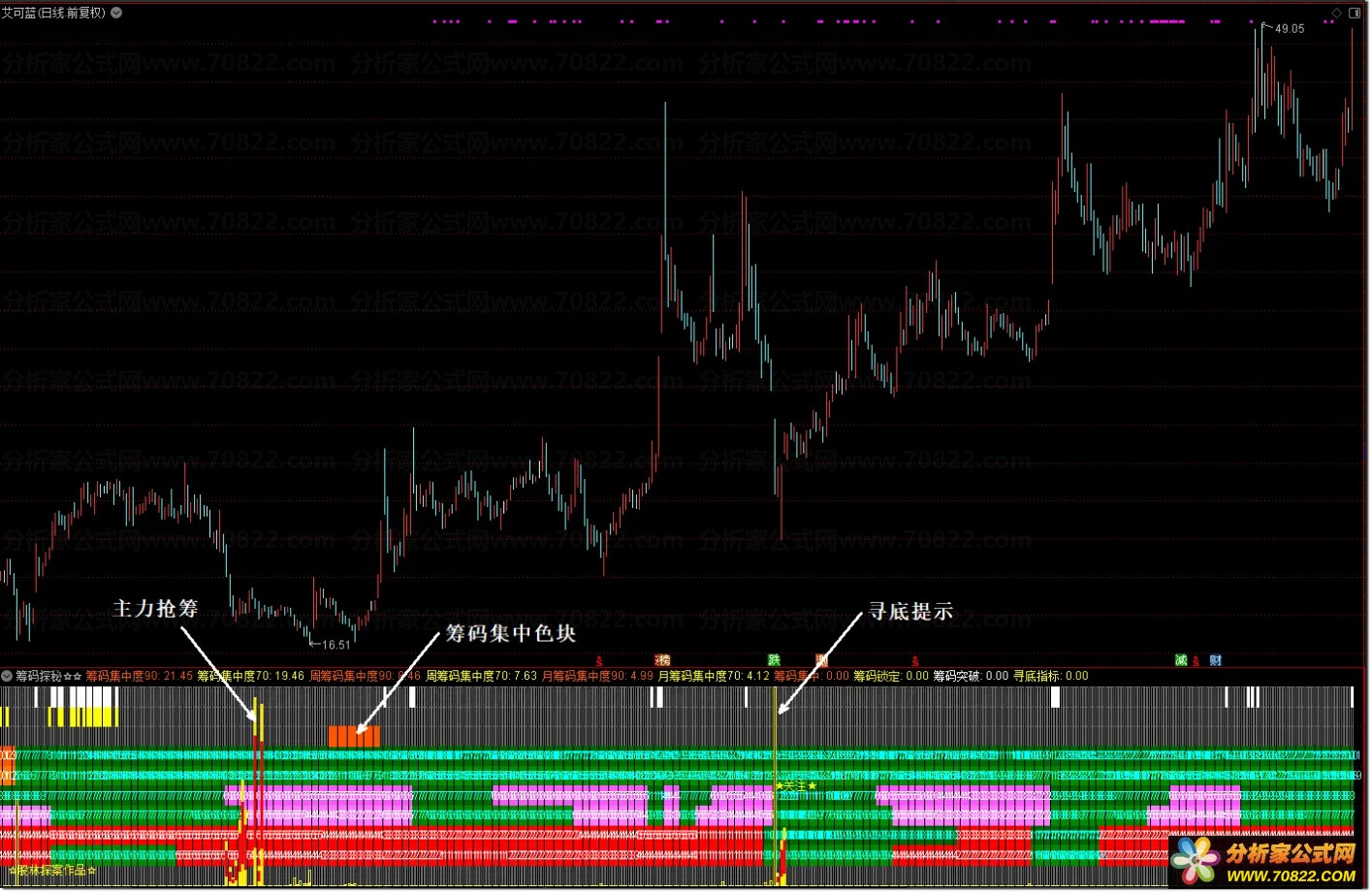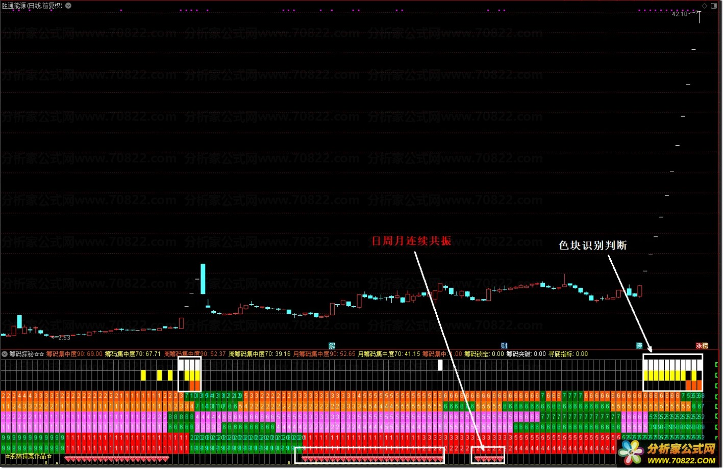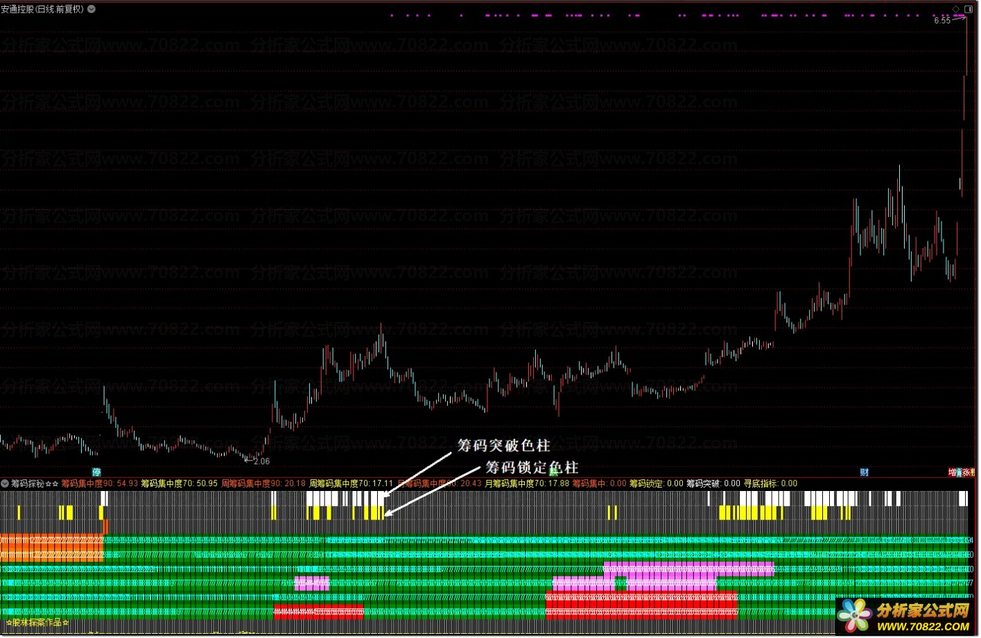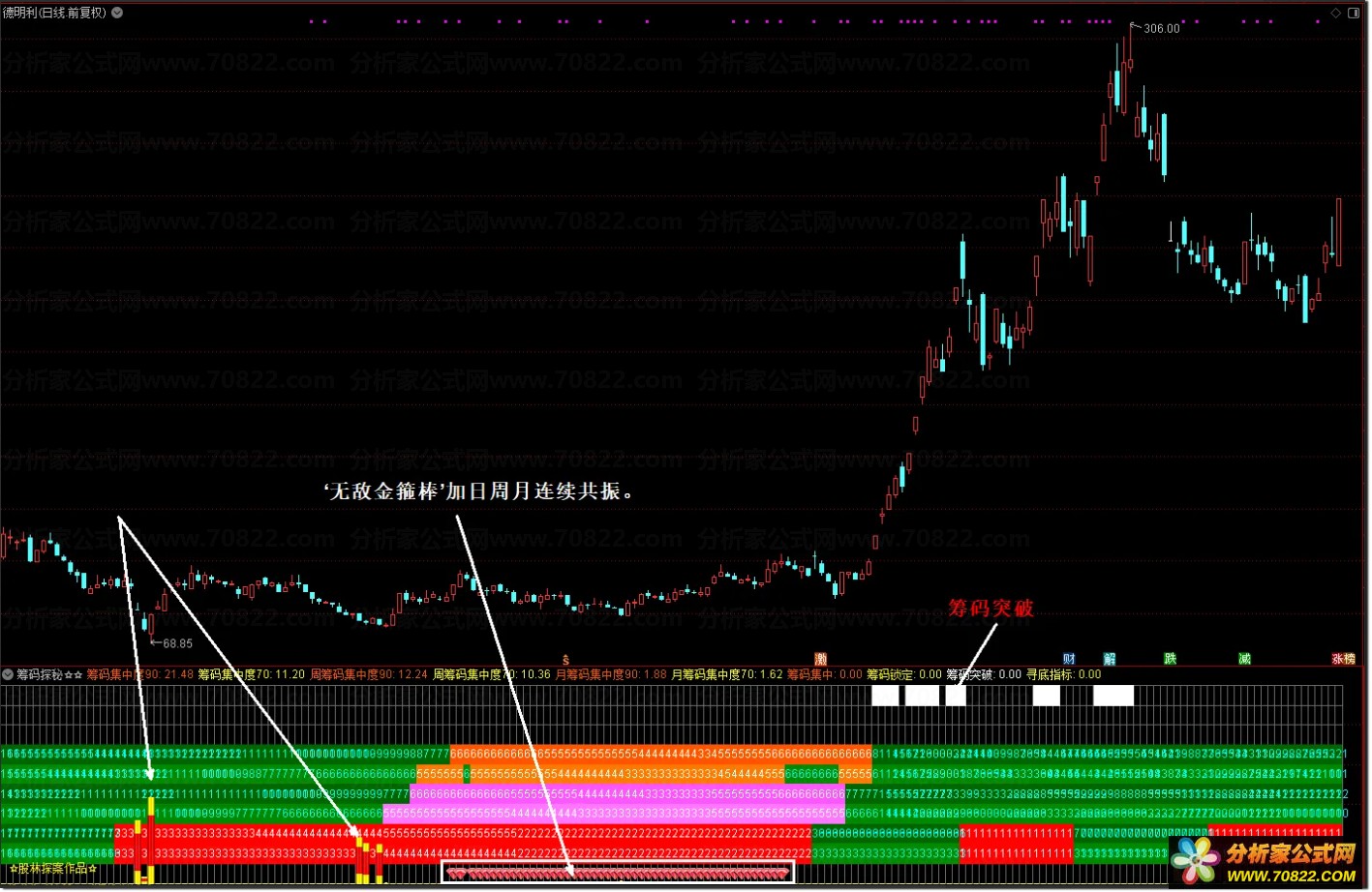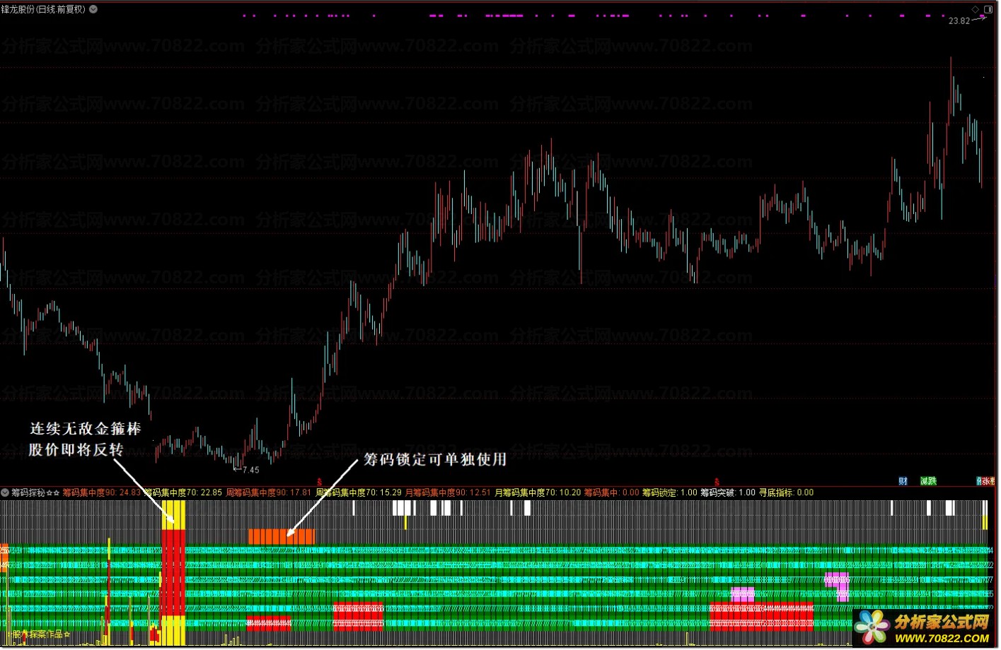 原创〖筹码探秘〗副图--—股市反收割、单兵致胜的利器! 个人研究认为,设定筹码集中度90小于7,筹码集中度70小于6,追求极致的筹码密集状态,筹码高度集中意味着抛压可能较小,叠加日周月多周期共振时,技术面的确定性会增强,低位连续共振时介入风险很小,是安全的可操作区域。妥善运用,大幅提升技术分析能力、股市盈利能力。
