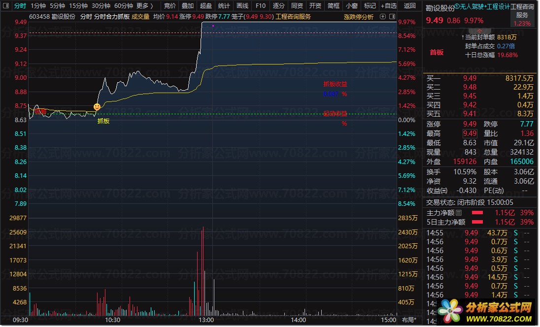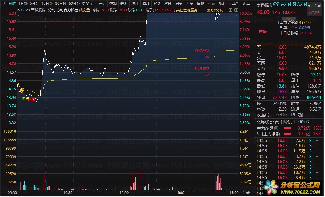 当出现“抓板”“分时起动”文字提示及图标(如黄色“抓板”、蓝色“←分时起动”)时,即为潜在强势介入点。