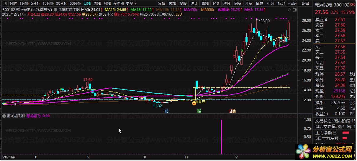 1. 潜龙起飞副图选股指标专为捕捉短中线趋势设计,适用于波段行情操作,帮助投资者在拉升初期精准潜伏入场,耐心等待后续起飞行情。