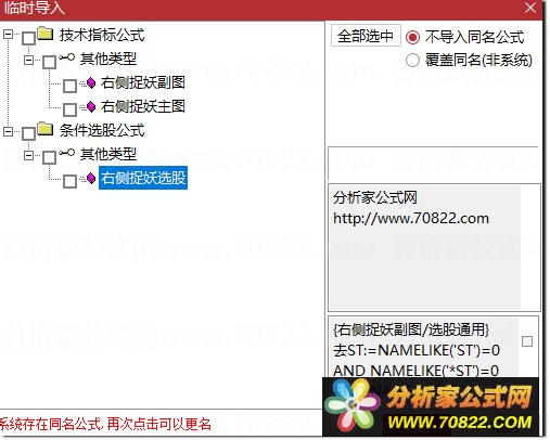 * 关于股票公式时间限制,如果在引入大智慧公式,交易师公式或者飞狐公式的时候,发现公式名称栏是空白的,这时候调整电脑时间到1997年,又能出现公式名称,并且能正常显示,可能是公式使用期限已过。