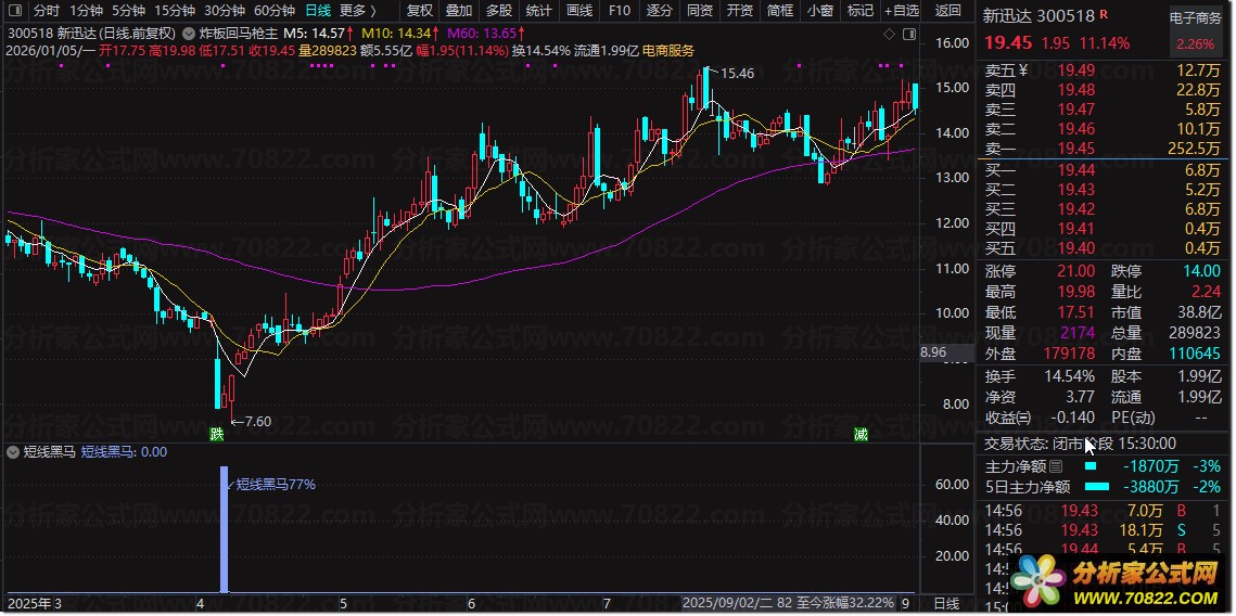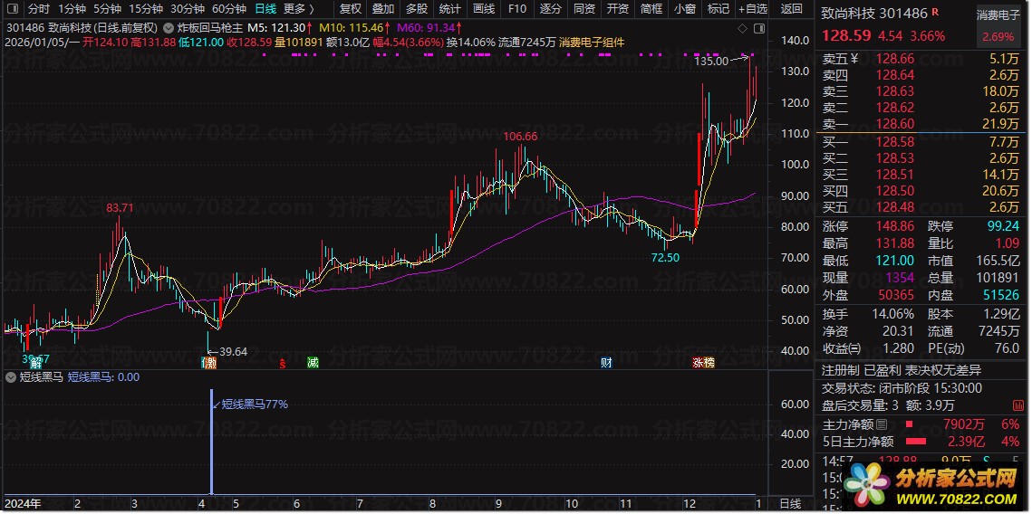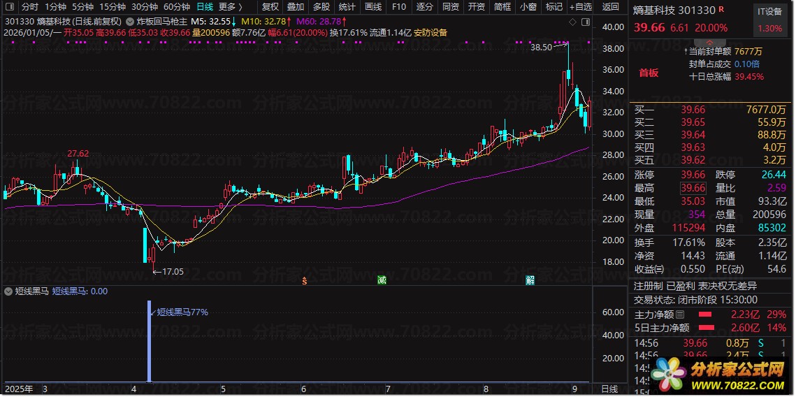 2. 信号解读:出现“短线黑马”标注时,代表个股超跌后具备反弹动能,胜率约76%;