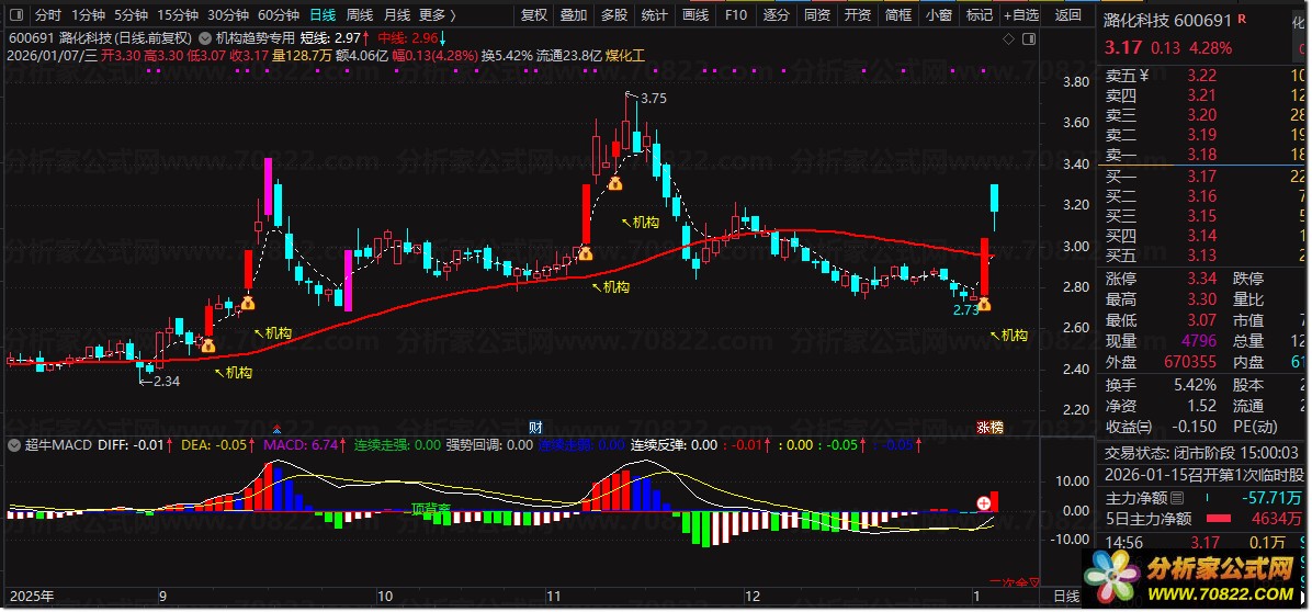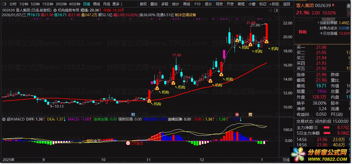 3. 出现“机构”文字提示时,说明个股进入机构高度控盘阶段,结合股价位置(低于40元、换手率<20%),可作为持仓/介入参考;