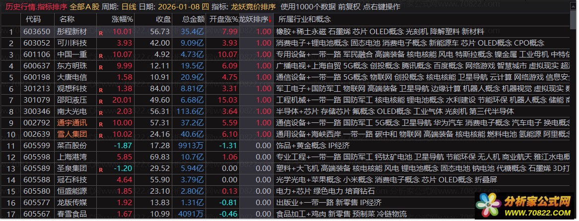 〖妖龙竞价排序〗指标,复合型竞价选股公式 竞价强势个股排序预警 一、指标说明: