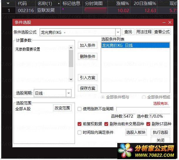 交易日9:25--9:30之间,快捷键 .401 排序,或者快捷键 Ctrl+T执行选股,也可以根据自己的使用习惯设置预警
