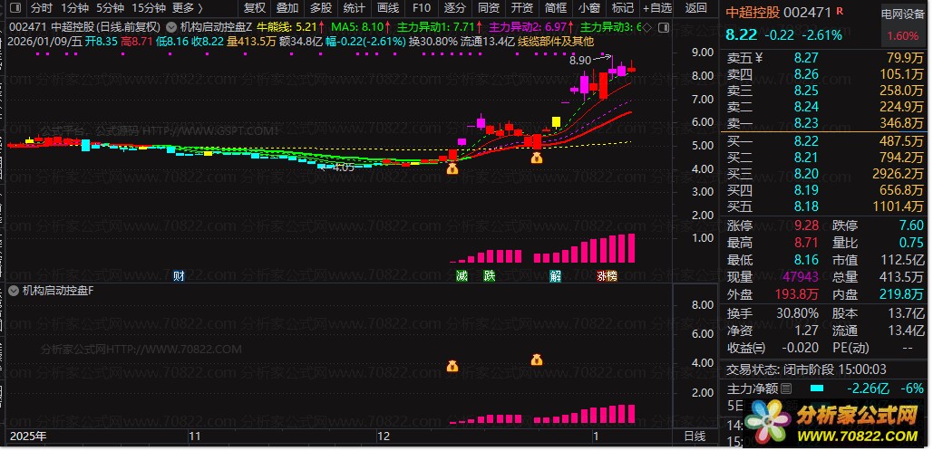 使用方法:将主图叠加于K线,副图置于下方观察动能变化,配合选股公式每日盘前或尾盘扫描,可高效锁定主力刚刚控盘、尚未大幅拉升的潜力标的。无未来函数,信号稳定,适合中短线投资者构建高胜率交易系统。
