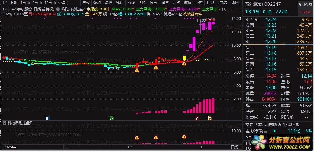 - 选股公式则在剔除停牌、ST、创业板及科创板股票后,精准筛选出“首次出现机构溢价超5%”的启动信号,确保信号纯净有效。