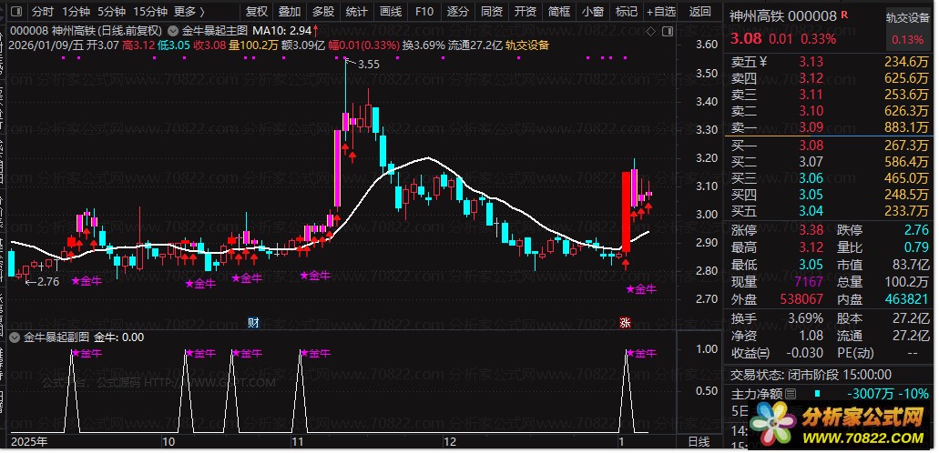 “金牛暴起”主副图组合公式精准出击 捕捉强势启动点!账户翻倍更轻松!!! “金牛暴起”是一套融合多维度技术指标的通达信主副图联动系统,专为捕捉个股强势启动信号而设计。主图通过黄色/洋红色K线高亮显示“金牛”买入信号,并在底部标注“★金牛”提示;副图则同步输出相同逻辑信号,便于盘中快速识别。