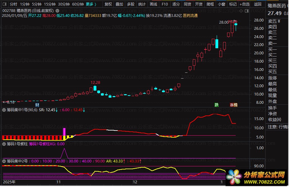 〖筹码集中度〗淘某宝目前866还在卖,自己买了分享给大家 本指标看上去很好,筹码峰战法,选出来的是低位集中度很高的,确实向上突破概率比较大。我用他 抓到了乐凯胶片 非常好用 自己真金白银买的 后续如果精华我把选股公式也放出 指标店家有加密 但是无限期使用的 高手可以自己和谐 。