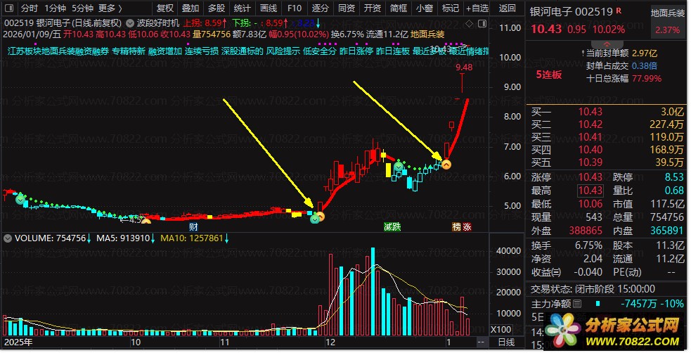 〖波段好时机〗主图/选股指标,波段操作买卖点信号清晰 手机电脑通用 指标简介: