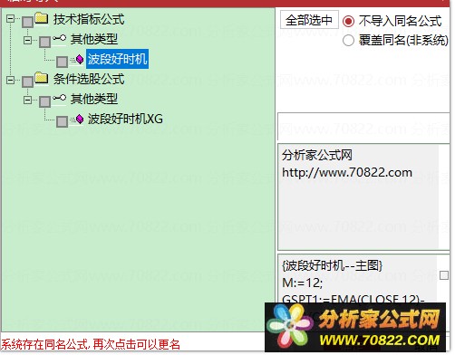 * 关于股票公式时间限制,如果在引入大智慧公式,交易师公式或者飞狐公式的时候,发现公式名称栏是空白的,这时候调整电脑时间到1997年,又能出现公式名称,并且能正常显示,可能是公式使用期限已过。
