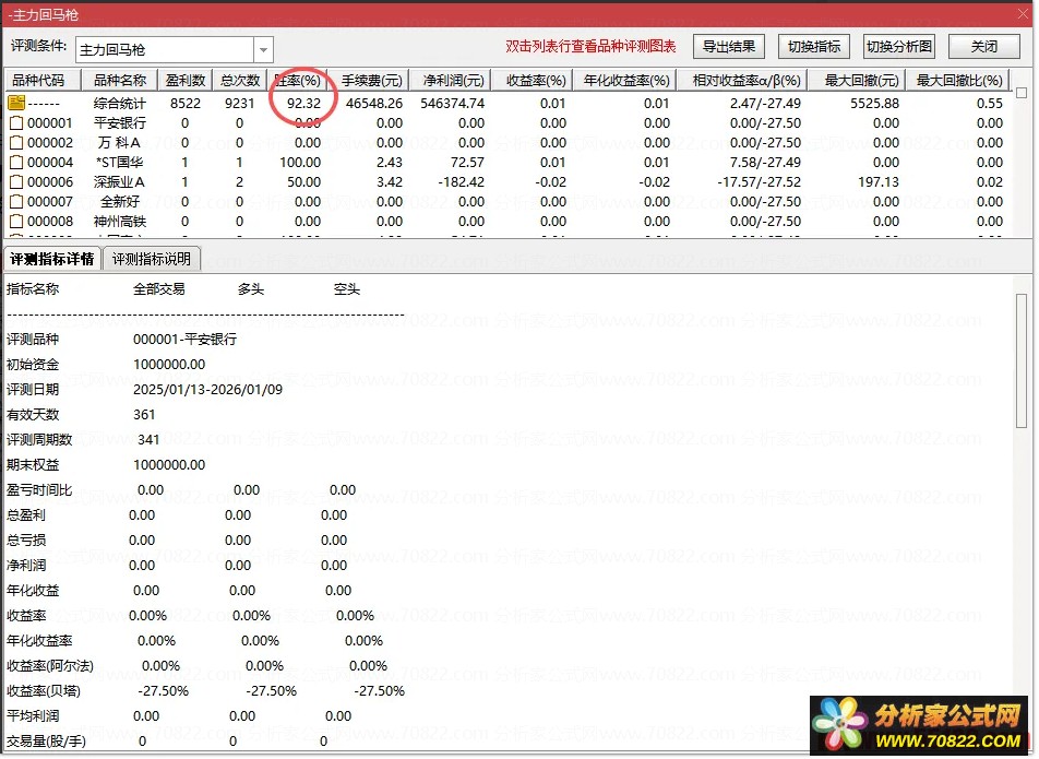 通过通达信评测系统实测在震荡市与牛市环境中主力回马指标成功率稳定超90