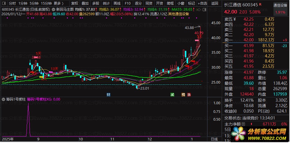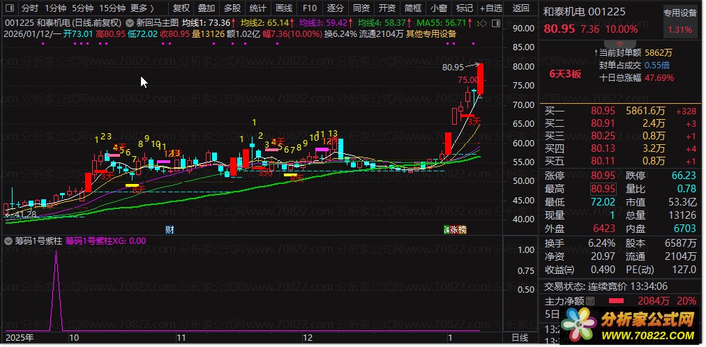 〖新回马主图〗——精准捕捉涨停回调黄金买点! “新回马主图”是一款专为短线交易者设计的通达信主图指标,融合多周期均线系统与智能涨停识别逻辑,帮助投资者高效锁定强势股回调后的二次介入机会。公式内置5日、10日、20日、30日等短期均线,以及13日、21日、55日关键趋势线,清晰呈现股价运行结构。核心亮点在于其独特的“涨停回马抢”机制:自动识别近期涨停板(兼容主板/创业板/科创板涨跌幅规则),并在K线上标注涨停位置、回调天数(1~13天)及关键支撑位(涨停K线低点与中轴)。更通过彩色柱体和文字提示,在第3、5、8、13天等斐波那契关键时间窗口发出视觉信号,契合主力洗盘节奏。适用于追强股、做二波行情的实战策略,助你快人一步,骑上回马抢龙头!使用时只需加载为主图指标,结合量能与市场情绪综合判断,效果更佳。